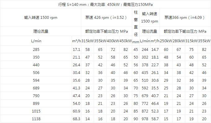 最大流量: 1138L/min 最大功率: 450kW